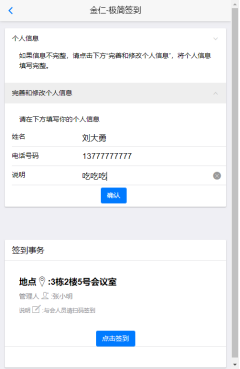 签到人:这是会议课程的参与者,他们需要参与会议并且签到,这种场景下,以微信为例,接收到签到任务截图,扫描二维码即可填写签到内容。